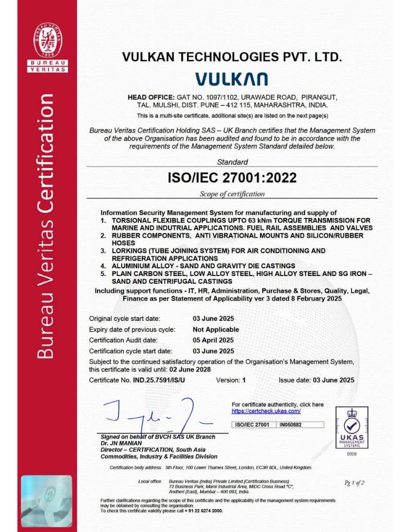 We’re proud to share that Vulkan Technologies Pvt Ltd has achieved the ISO/IEC 27001:2022 certification from Bureau Veritas — a globally recognized standard for information security management systems.